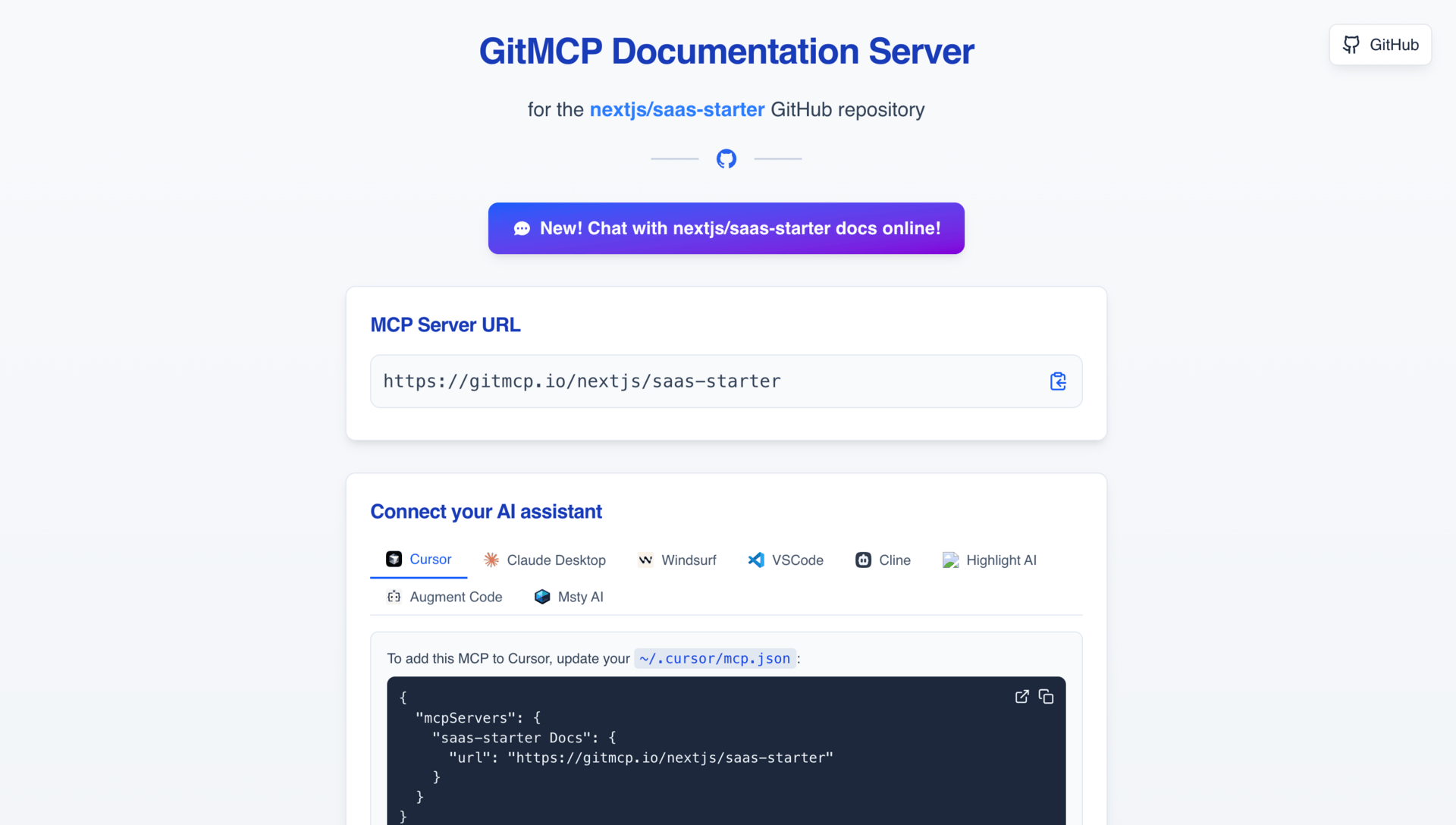 Plus, it adds a live chat for every repo so you can ask questions directly from the docs.